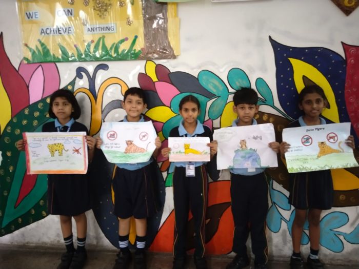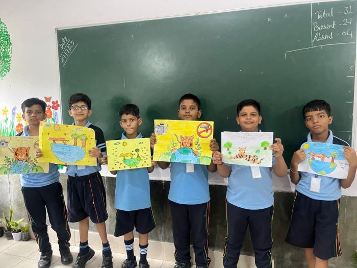 On the occasion of International Tiger Day, observed on 29th July 2025, a Poster Making Activity was organized for students of Classes 3-5 to raise awareness about the importance of tiger conservation. Students enthusiastically participated in the activity and expressed their concern for saving tigers through creative and impactful posters. Using vibrant colors and powerful slogans like “Save Tigers, Save Wildlife”, “Roar for the Tigers”, and “Only You Can Save Them”, the young artists highlighted the urgent need to protect this majestic species from extinction. The activity not only allowed students to showcase their artistic talents but also educated them about the role of tigers in maintaining ecological balance. Teachers praised the students for their meaningful efforts and thoughtful messages. The posters were displayed in the school corridors to spread the message of tiger conservation among the larger school community. The event was successful in instilling a sense of responsibility and love for wildlife in the hearts of the young learners.
